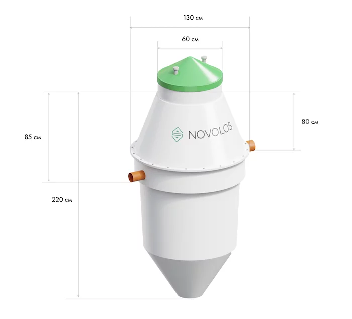 Диагональные стенки центральной камеры и корпуса сгущают взвешенные в воде частицы, и ускоряют процесс осаждения. Воды камеры биореактора и внешней камеры отстойника сообщаются через дно септика. В результате, на поверхности внешней камеры образуется осветленный сток, который перетекает в третью камеру.
