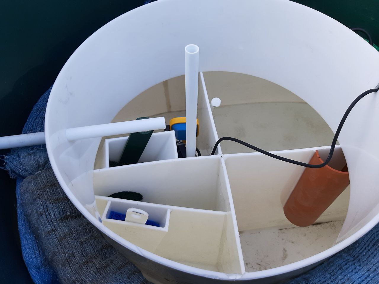 Поступление хозяйственно-бытового стока из дома в приемную камеру. Объем первичного приемника зависит от модели септика и его производительности. Так, для работы септика PEGAS 7пр используется приемный отсек объемом {zalp} литров. Здесь вода с отходами смешивается с активным илом. Сток некоторое время накапливается и отстаивается, крупные частицы оседают на дно. По достижении определенной отметки включается насос и перемещает воду в следующий отсек.